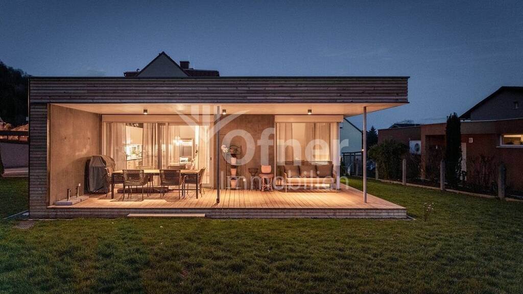 Auf einem sonnigen Grundstück mit einer Größe von ca. 640 m² entsteht ein zeitgemäßes Familienhaus. Der intelligente Grundriss auf einer Ebene hat seinen Mittelpunkt im offenen Wohnraum, der auf die herrliche Süd-Terrasse führt. Details wie Luftwärmepumpe mit Fußbodenheizung, Eichenparkettböden, Photovoltaikanlage, Lärchenholz-Terrassenboden, elektrische Außenraffstores bei der Wohnraumverglasung, Holzcarport für zwei PKW, Kellerersatzraum außerhalb des Hauses und vieles mehr machen dieses efa-Haus zu Ihrem Traumhaus in wunderbarer Wohnlage im Grünen mit guter Infrastruktur.
