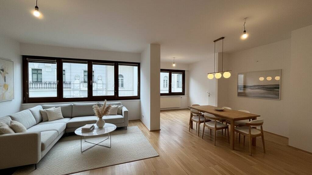 Bei den möblierten Fotos handelt es sich um KI/virtuelles Homestaging, das Objekt wird unmöbliert vermietet, Küche/Badezimmer bleiben im Objekt.