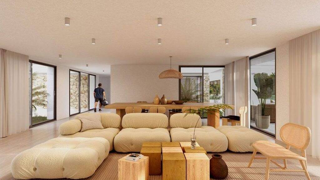 Dieses große ländliche Grundstück mit seinen 63.058 m² Land liegt in der Region Cas Perets im Gemeindegebiet von Ses Salines direkt an der Grenze zu Santanyi. Das Grundstück ist über eine asphaltierte Straße bequem zu erreichen, komplett mit einer Natursteinmauer eingefriedet und hat einen schönen Mandelbaumbestand. Vom höchsten Teil des Grundstückes erschließt sich ein Blick bis zur Serra Llevant und den Klosterberg San Salvador. Hier ist auch der Bau des Hauses geplant. Das vom Consell und der Gemeinde Ses Salines im Oktober 2025 genehmigte und im Preis enthaltene Basisprojekt besteht aus einem ebenerdigen Wohnhaus mit 487 m² bebauter Fläche (311 m² NETTO Wohnfläche). Hinzu kommen 337 m² Keller, Carport für 4 PKW, Tennisplatz, Schwimmbad (35 m² Wasseroberfläche) sowie ein Gebäude mit 60 m² bebauter Fläche für die landwirtschaftliche Nutzung. Die Anschlüsse an die öffentliche Strom- und Wasserversorgung sind möglich, aber kostenintensiv. Es empfiehlt sich eine autarke Lösung. Der Ort Ses Salines an der Südostspitze von Mallorca ist vor allem bekannt für seine Salinen die auch dem Ort seinen Namen gegeben haben. In den letzten Jahren erfreut sich die Region stetig wachsender Beliebtheit. Die ganzjährig gute Infrastruktur des Ortes sowie die Nähe zu dem bekannten Ferienort Colonia de Sant Jordi mit seinem Yachthafen, der Promenade und vielen kleinen Sandstränden machen einen Teil der Attraktivität dieses Landstriches aus. Teile des Gemeindegebietes wurden zum Naturschutzgebiet erklärt. Innerhalb dieses Naturschutzgebietes liegt der bekannte Strand Es Trenc sowie das Landgut S’Avall, welches das größte zusammenhängende sich in Privatbesitz befindliche Landgut Mallorcas ist. Preis: 865.000 €