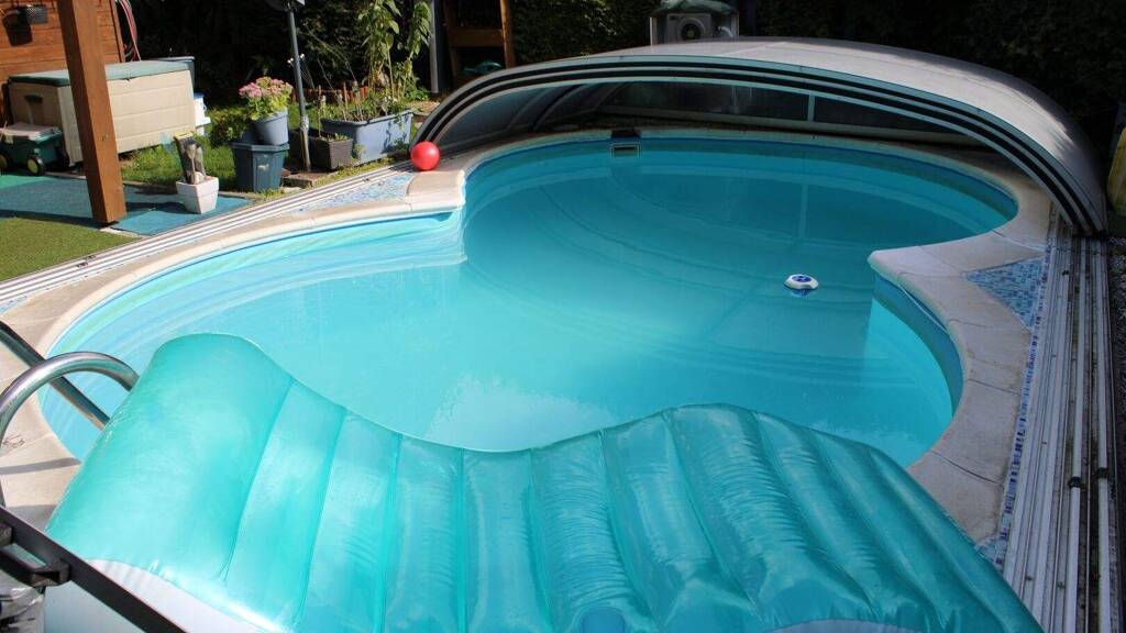 Zum Verkauf steht eine grosszügige Doppelhaushälfte mit Garten und Pool.