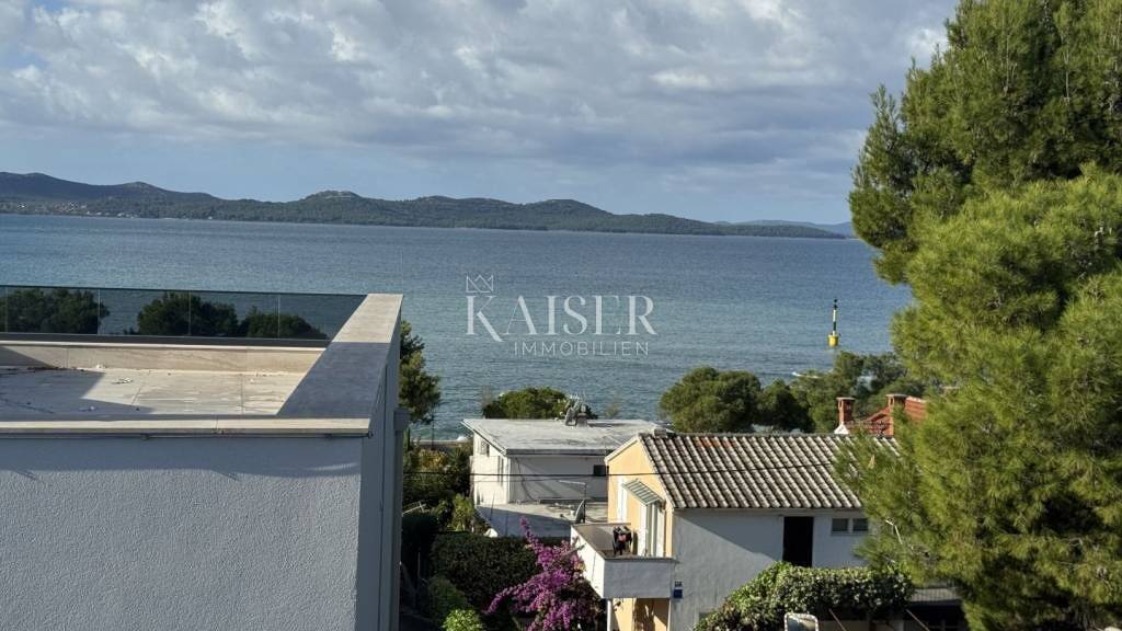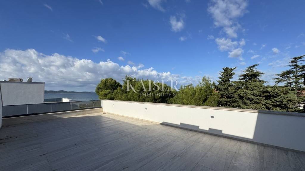 Im zweiten Stock eines modernen neuen Wohngebäudes in einer ruhigen Straße in Diklo, nur wenige Schritte vom Meer und Strand entfernt, steht ein außergewöhnliches Penthouse S5 zum Verkauf. Dieses luxuriöse 82,63 m² große Apartment mit drei Schlafzimmern vereint elegantes Design, hochwertige Ausstattung und unglaubliche Funktionalität und wird voll möbliert und bezugsfertig übergeben. Ein besonderes Highlight des Penthouses ist die großzügige 83 m² große Dachterrasse, die einen Panoramablick auf das Meer bietet und es Ihnen ermöglicht, den offenen Raum, die Privatsphäre und das einzigartige Ambiente in vollen Zügen zu genießen. Die Raumaufteilung des Apartments wurde sorgfältig geplant. Der Eingangsbereich und Flur mit 7,15 m² führen zu allen Zimmern, während das 2,10 m² große Gäste-WC und das elegante 3,50 m² große Badezimmer mit ebenerdiger Dusche Funktionalität und anspruchsvolles Design bieten. Wohnzimmer, Küche und Esszimmer bilden zusammen einen offenen Raum von 23,40 m², der dank großer Glaswände bis zur Decke und extrabreiter Schüco-Schiebetüren, die auf eine überdachte Loggia von 21 m² führen, mit natürlichem Licht durchflutet ist. Schlafzimmer 1 ist 8,85 m² groß und Schlafzimmer 2 12,50 m², beide mit Einbauschränken und Premium-Betten. Im Keller gibt es einen Abstellraum von 7,55 m² und ein Garagenstellplatz in der Tiefgarage (Berechnungskoeffizient 1,68 m²) ist im Preis inbegriffen. Ein Aufzug führt direkt zur Wohnung und sorgt für maximalen Komfort und Privatsphäre. Die Wohnung wird mit Materialien und Technologie von höchster Qualität ausgestattet. Eine maßgefertigte Küche mit Premium-Geräten, maßgefertigte Möbel, Fußbodenheizung in der gesamten Wohnung und Klimaanlage in allen Zimmern garantieren das ganze Jahr über umfassenden Komfort. Aluminium-Tischlerei mit Dreifachverglasung, elektrische Rollläden mit integrierten Moskitonetzen, Sicherheitstüren und eine Videostation mit Monitor unterstreichen das hohe Maß an Sicherheit und Qualität zusätzlich. Alle technischen Installationen, einschließlich Kabel-, ISDN- und TV-Anschlüsse, sind diskret installiert und in den Badezimmern gibt es keine sichtbaren technischen Geräte. Auch die Klimaanlagen sind nicht an der Fassade angebracht, wodurch das gepflegte und elegante Erscheinungsbild des Gebäudes gewahrt bleibt. Eine Beleuchtung in warmen Tönen, einschließlich indirekter Beleuchtung im Wohnzimmer und auf der Loggia, verleiht dem Raum ein edles und angenehmes Ambiente. Das Penthouse besticht durch seinen Panoramablick auf das Meer von der 83 m² großen Dachterrasse - ideal, um Sonnenauf- und -untergänge, Treffen im Freien oder intime Momente der Privatsphäre mit Familie und Freunden zu genießen. Die Südausrichtung und die großen Glasöffnungen sorgen das ganze Jahr über für einen außergewöhnlich hellen und angenehmen Wohnraum. Die Wohnung liegt in einem Eliteviertel von Diklo und bietet Ruhe und Privatsphäre. Der gepflegte Kieselstrand ist nur 70 Meter entfernt. Alles, was Sie brauchen, von Geschäften und Restaurants bis hin zu Cafés und einer Bushaltestelle, ist leicht zu erreichen. Die Wohnung verfügt über ein Energiezertifikat der Klasse A, eine hochwertige Bauweise und eine hervorragende Schalldämmung. Damit ist sie die perfekte Wahl sowohl für das Familienleben als auch als luxuriöses Sommerhaus oder als Investition in einem der begehrtesten Viertel von Zadar. Die Maklerprovision für den Käufer beträgt 3 % zzgl. MwSt. und wird beim Kauf einer Immobilie nach Abschluss des ersten Rechtsgeschäfts fällig. Kontaktieren Sie uns vertrauensvoll für weitere Informationen und um einen Besichtigungstermin zu vereinbaren. Telefon: +385997031459 E-Mail: vedran@kaiser-immobilien.hr