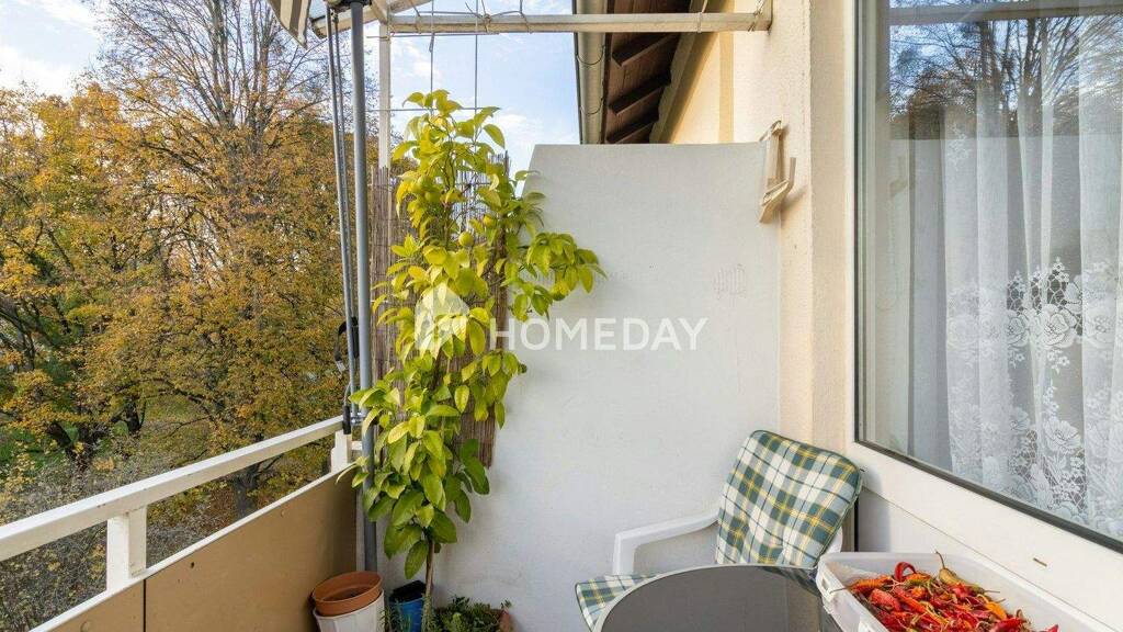 Über das gemeinschaftliche Treppenhaus gelangt man in den einladenden Flur, von dem alle Räume der Wohnung, bis auf das Büro, erreichbar sind. Das großzügige Wohnzimmer bildet das Herzstück und öffnet sich zum überdachten Balkon, der nach Südwesten ausgerichtet ist. Von hier aus genießt man eine schöne Aussicht ins Grüne - ein perfekter Ort, um den Tag entspannt ausklingen zu lassen.