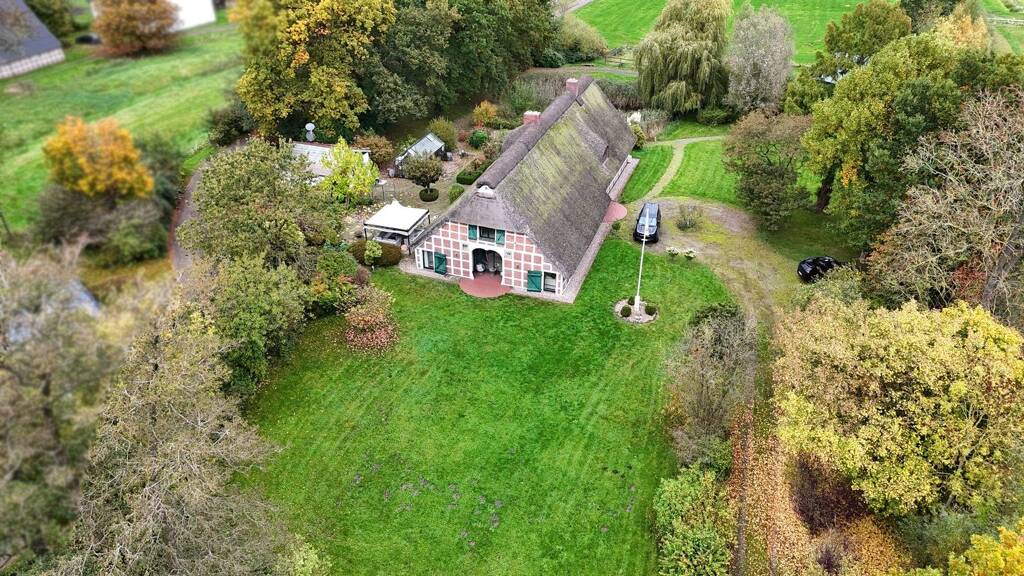 Reetdachanwesen mit weitläufigem Grundstück, Pferdestall und Teich