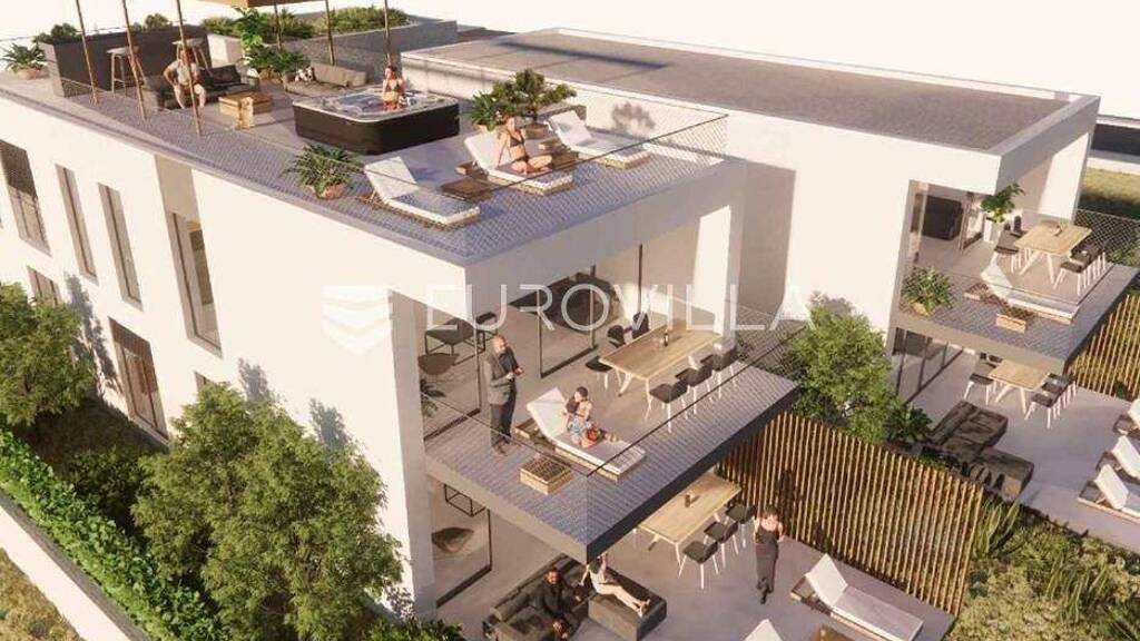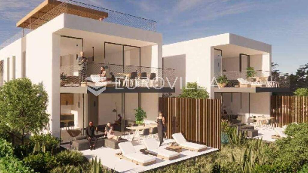 Ugljan, Ugljan luksuzni jednosobni apartman prvi red do mora 85.18 m2.Prostran apartman u samom centru mjesta, idealan za obiteljski zivot ili boravak tijekom ljetnih mjeseci. Apartman se sastoji od ulaznog prostora, prostrane kuhinje s blagovaonicom i dnevnim boravkom iz kojeg se izlazi na terasu, udobne spavace sobe, hodnika, kupaonice s wc-om i dodatnog wc-a.Ukupna neto povrsina stana iznosi 85.18 m2. Stan je svijetao, prozracan i ureden materijalima vrhunske kvalitete. Apartman se nalazi u prizemlju s vrtom stvarne povrsine 139 m2.Parkirna mjesta bit ce natkrivena pergolama, bit ce osigurana i spremista za bicikle. Predvideno je i spremiste za zajednicko koristenje vlasnika objekta.Neometan pogled na more iz udobnosti svog doma. Prvi red do mora. Projekt moderne izvedbe i vrhunske kvalitete.Otok Ugljan je poznat po svojoj bogatoj povijesti i prekrasnoj prirodi, te nudi brojne sadrzaje za zivot tijekom cijele godine.Uzivajte u blizini svih potrebnih sadrzaja, kao sto su trgovine, restorani i ostali sadrzaji, dok istovremeno uzivate u mirnom okruzenju otoka.Za vise informacija i dogovor za razgledavanje same lokacije, molim kontakt.