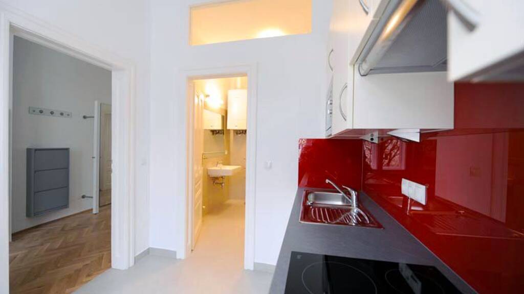 Das moderne und vollmöblierte Apartment mit einer Größe von 47m², verfügt über ein Schlafzimmer, eine voll ausgestattete Küche, einen Vorraum, ein Bad (Badewanne und Waschmaschine) und ein WC.