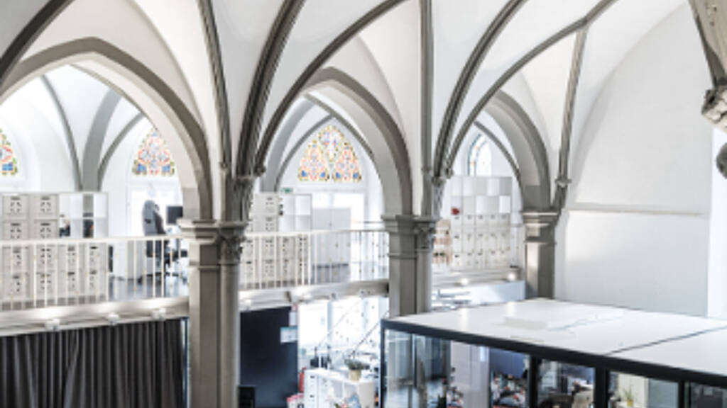 Neue Ideen in alten Steinen. Die ehemalige Stiftungskirche wurde zu einem neuen und zentralen Ort für Arbeit und Kultur umgewandelt. Diverse Büroräume, freie Tische und Meetingräume stehen zum Buchen bereit. Ein digitales Schließungssystem, das per App gesteuert wird und eine voll-ausgestattete Küche sind nur einige Goodies, die dich als Coworker erwarten! Wir freuen uns auf dich.