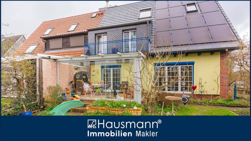 - Lage: Bergmannstraße in Hamburg Langenhorn - höchster Wohnkomfort - gehobene Ausstattung - außergewöhnliche Doppelhaushälfte - zwischen 2008 und 2023 kernsaniert/ energetisch auf dem neusten Standard - Wärmepumpe, Photovoltaikanlage mit Batteriespeicher - Wasserenthärtungsanlage, Elektrorollläden, Fassadendämmung - Wallbox, neue Fenster, neues Dach u.v.m. - separates Gäste-WC mit Fenster - großzügige Diele - geräumige, hochwertige Einbauküche - wunderschöner, schwedischer Kaminofen - sonnige West-Terrasse mit Glasüberdachung - attraktive Holztreppe - großes, weiß/blau gefliestes Vollbad mit separater Dusche und 2 Fenstern - ausgebautes Dachstudio (nur Nutzfläche) - Pitchpineböden - Vollkeller - großes Doppel-Carport mit Wallbox - neuwertiges Gewächshaus - neuwertiges Metallgerätehaus