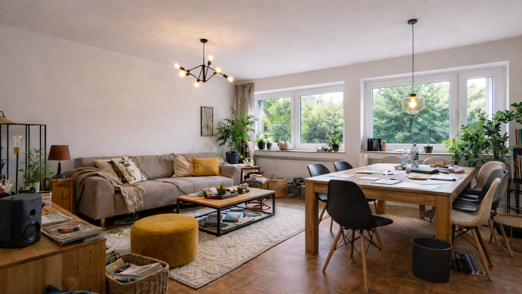 In diesem überzeugenden Gesamtumfeld befindet sich die ca. 105 m² große, hervorragend geschnittene 4-Zimmer-Wohnung mit zwei Badezimmern und einem sonnigen Balkon in Südausrichtung. Der durchdachte Grundriss mit zentral gelegenem Flur ermöglicht eine optimale Erschließung aller Räume und sorgt für eine hohe Alltagstauglichkeit, die sich direkt in einer stabilen Vermietbarkeit widerspiegelt. Das großzügige, lichtdurchflutete Wohnzimmer mit hochwertigem Echtholzparkett bildet den Mittelpunkt der Wohnung und wird durch den Balkon ideal ergänzt, während die weiteren Zimmer flexibel als Schlaf-, Kinder-, Arbeits- oder Gästezimmer genutzt werden können - ein klarer Vorteil für unterschiedliche Mieterzielgruppen.