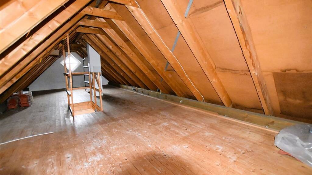 Im Erdgeschoss befindet sich die große Diele, die Küche mit angrenzendem Abstellraum, das großzügige Wohnzimmer mit einem Ofenanschluss sowie die Gästetoilette und einen großen Hauswirtschaftsraum mit Anschlüssen für eine Waschmaschine und einen Trockner. Das Dachgeschoss verfügt über ein Elternschlafzimmer, zwei Kinderzimmer, ein Gästezimmer bzw. kleines Büro, einen Flur sowie das große Bad mit Eckbadewanne, Dusche, Toilette und Doppelwaschbecken.