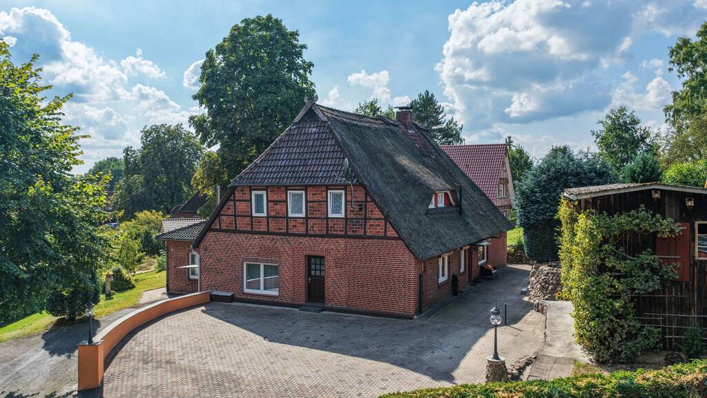 In malerischer Natur präsentiert sich diese außergewöhnliche Rarität aus dem Jahr 1863. Sie vereint architektonische Raffinesse, historischen Charme und modernen Wohnkomfort zu einem unvergleichlichen Wohnerlebnis. Das überwiegend in Reet gedeckte Dach ist eine einzigartige Kombination aus Tradition, natürlicher Schönheit und Funktionalität und schafft ein ökologisch nachhaltiges Wohnklima. Das Landhaus wurde in den letzten Jahren restauriert, saniert und seither mit viel Liebe zum Detail gepflegt.