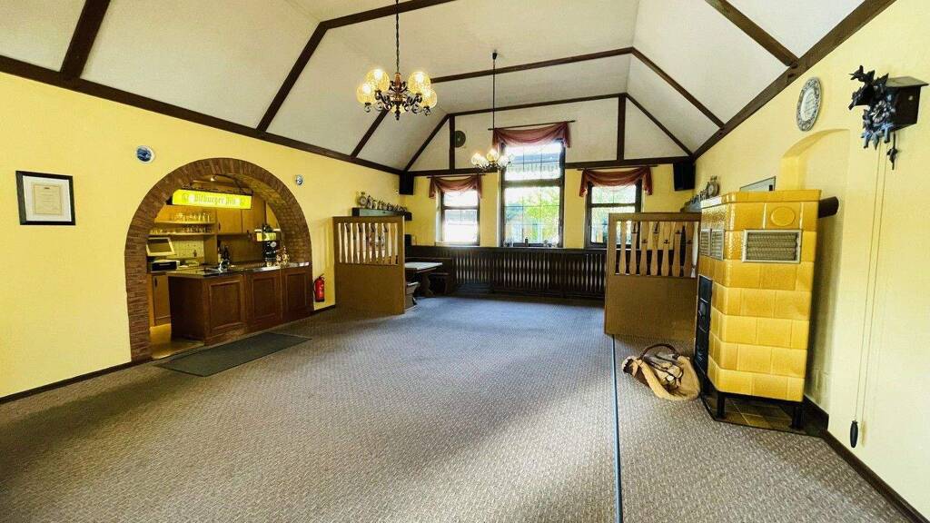sowie ein ehemaliges Restaurant (2 Gasträume, 1 große Küche, Gäste-WC, 2 Lagerräume).
