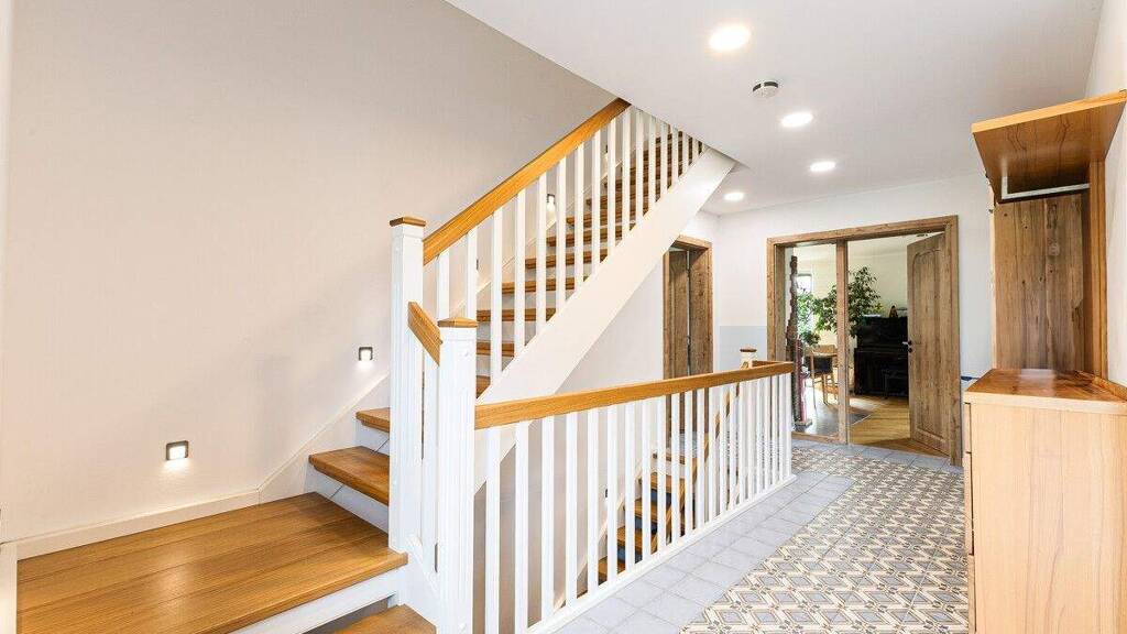Der Wohnkomfort wird durch ein fortschrittliches Smart-Home-System (KNX-Steuerung) deutlich erhöht: Intelligente Lichtsteuerung, Bewegungsmelder sowie schaltbare Steckdosen (z.T. mit Strommessung) schaffen ein behagliches und komfortables Wohnumfeld. Besonders innovativ ist die Tunable-White-Beleuchtung, die Lichtfarben flexibel von warmweiß bis kaltweiß reguliert und so den natürlichen Biorhythmus unterstützt.
