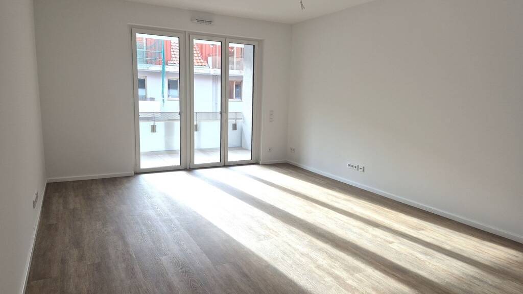 Die Wohnung befindet sich im 1. OG eines neu errichteten Gebäudes und ist somit ideal für barrierefreies Wohnen. Sie betreten die Wohnung und gelangen direkt in den geräumigen Wohn- und Essbereich, der durch die bodentiefen Fenster hell und freundlich wirkt.