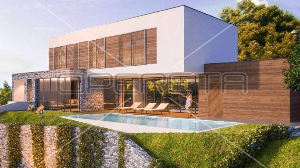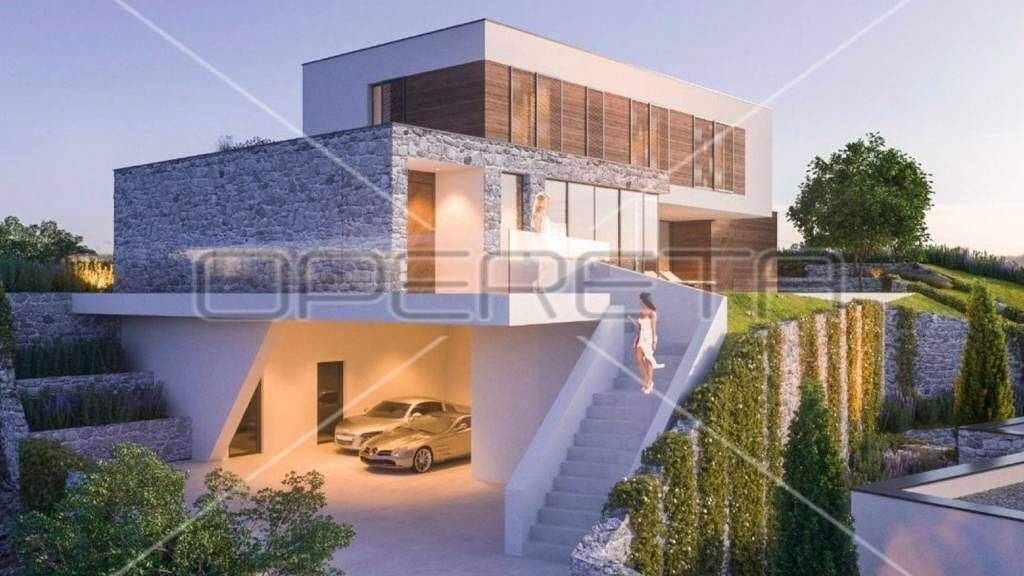 Moderne dreigeschossige Villa befindet sich auf einem Hügel mit atemberaubendem Blick auf das Meer, die Inseln und Tribunj. Diese beeindruckende Immobilie, derzeit im Bau, bietet die perfekte Kombination aus Luxus, Funktionalität und mediterranem Charme.