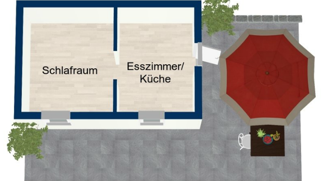 Terrasse, Holzlager, Regenwasser-Fass ( 1000 l ) ,Kochnische mit Gaskocher, 4 Schlafplätze,