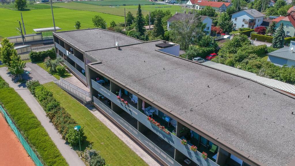 Der Wohnraum ist großzügig angelegt. Bett, Couch und Esstisch finden hier genügend Platz, der Küchenbereich fügt sich harmonisch ein. Vom Wohnraum gelangt man direkt auf die Loggia - einfach entspannen und die Seele baumeln lassen. Das modern verflieste Badezimmer ist mit einer bodenebenen Dusche ausgestattet. Des Weiteren befinden sich ein Handwaschbecken, ein WC und ein Waschmaschinenanschluss im Badezimmer. Das Fenster im Badezimmer verwöhnt sie optimal mit Tageslicht.