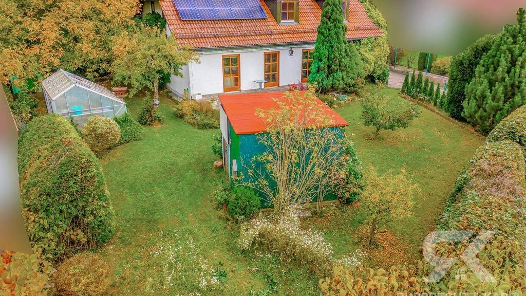 Das Dach ist mit langlebigen Betonziegeln gedeckt und in sehr gutem Zustand. Zum Haus gehört eine große Garage mit Schiebetor, die ausreichend Platz für Fahrzeuge und Gartengeräte bietet. Der Garten ist nach Westen ausgerichtet und damit ideal für Sonnenliebhaber. Eine blickdichte Hecke sorgt für Privatsphäre, die große Terrasse lädt zum Entspannen ein. Zwei Gartenhäuschen - eines vorne und eines im hinteren Bereich - bieten zusätzlichen Stauraum und eignen sich hervorragend für gemütliche Grillabende, auch bei schlechtem Wetter.
