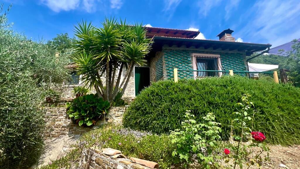 Das Anwesen umfasst ein Haupthaus, eine kleinere Dependance sowie ein 10.775 qm großes, terrassiertes Grundstück. Der Hauptteil des Grundstückes mit ca. 80 kultivierten Olivenbäumen, verschiedenen Obstbäumen und Gemüsegarten ist eingezäunt, der restliche Teil sind mediterrane Macchia und Eichenwald. Parkplätze stehen auf dem Grundstück mit direktem Zugang zur öffentlichen Straße zur Verfügung, die Häuser selber sind nur über einen befestigten Weg zu Fuß erreichbar. Die Möglichkeit zum Bau einer grundstückseigenen Zufahrt besteht.