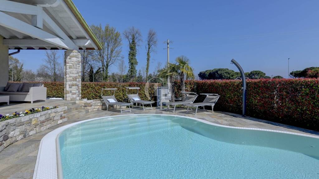 In Sirmione, nur fünfhundert Meter vom Seeufer entfernt, erhebt sich eine Villa, die weit mehr ist als nur ein Haus: eine perfekte Symbiose aus Raffinesse und Liebe zum Detail. Sie liegt in einem kleinen Borgo mit fünfzehn völlig unabhängigen Einfamilienvillen - ein Kontext, der Sicherheit und Gemeinschaftsgefühl vermittelt, ohne auf die volle Privatsphäre und Freiheit einer alleinstehenden Residenz verzichten zu müssen. Schon beim Betreten spürt man, dass hier nichts dem Zufall überlassen wurde: Dieses Zuhause wurde mit Sorgfalt entworfen und mit Materialien und Ausstattungen realisiert, die auf dem Markt nur selten zu finden sind.