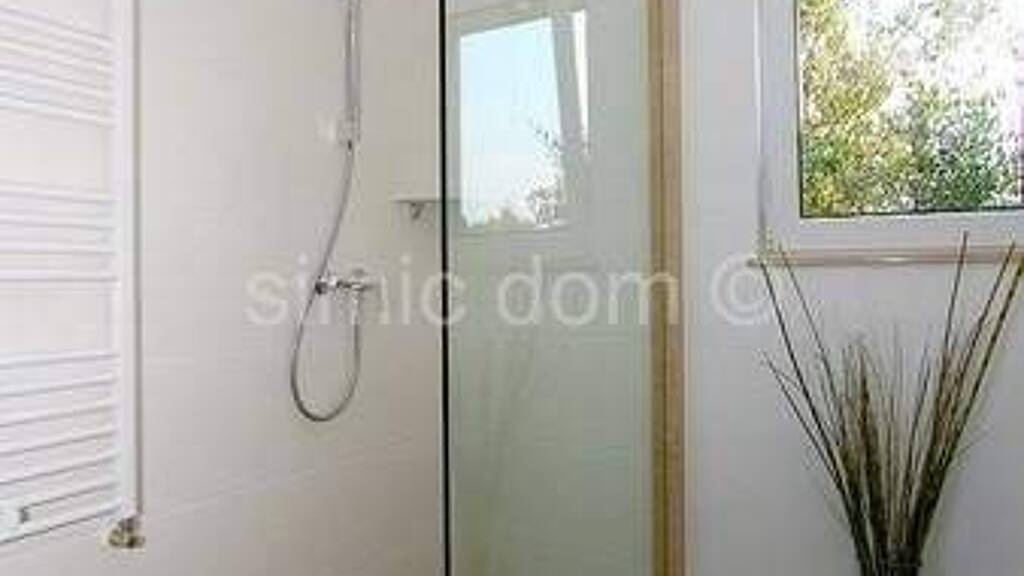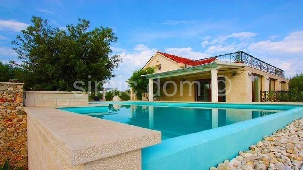 Wir verkaufen eine Villa auf dem Grundstück mit Gesamtfläche von 11400 m2 mit Panoramablick auf das Meer und die umliegenden Orte. Die Villa verfügt über zwei Etagen mit Fläche von 182 m. Erste Etage ist eigentlich Erdgeschoss und verfügt über die Küche, Wohnzimmer, zwei Schlafzimmer, Bad, WC, zwei breite Terrassen. Im Erdgeschoss befindet sich noch Pool und Jacuzzi. Im ersten Stock befindet sich eine große Schlafzimmer mit dem Eingang auf die Terrasse, wo sich Jacuzzi befindet. Bei der Konstruktion wurden hochwertige Materialien verwendet. Die Anlage ist voll möbliert und ausgestattet, klimatisiert. Der Innenhof ist hübsch dekoriert und gepflegt, die Villa ist auch von Olivenhainen umgeben. Ideales Eigentum für Touristenmieten. Rechtmäßiges Eigentum.