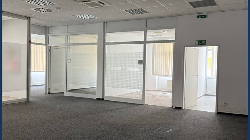 Angrenzend an diesen Hauptbereich befinden sich mehrere kleinere Räume, die flexibel genutzt werden können etwa als Einzel oder Team-Büros, Besprechungsräume, Rückzugsbereiche oder Lagerflächen. In diesen Bereichen sorgen Laminat- und Vinylböden für ein modernes, gepflegtes Ambiente und schaffen eine angenehme Arbeitsatmosphäre.