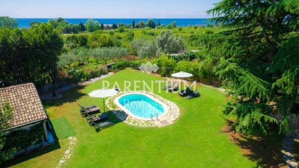 Umag, eine exklusive Villa nur 300 m vom Strand entfernt, besteht aus einem Haupthaus von ca. 170 m2 und drei Nebengebäuden, 25m2, 28m2 und 44 m2. Das Haupthaus besteht aus einer Küche mit Essbereich, Wohnzimmer, einem Schlafzimmer, Bad, WC und einer großen Terrasse. Jedes Nebengebäude hat ein Schlafzimmer und ein Badezimmer. Das Haus verfügt über eine Zentralheizung mit Heizöl, zusätzlich gibt es im Haupthaus einen Holzkamin. In der Mitte des Hofes befindet sich ein runder Pool von ca. 25 m2. Der Garten ist von einer Steinmauer und einem grünen Zaun umgeben und verfügt über ein automatisches Bewässerungssystem. Das Haus wird sowohl wegen der exklusiven Dekoration als auch wegen der Lage erfolgreich touristisch vermietet.