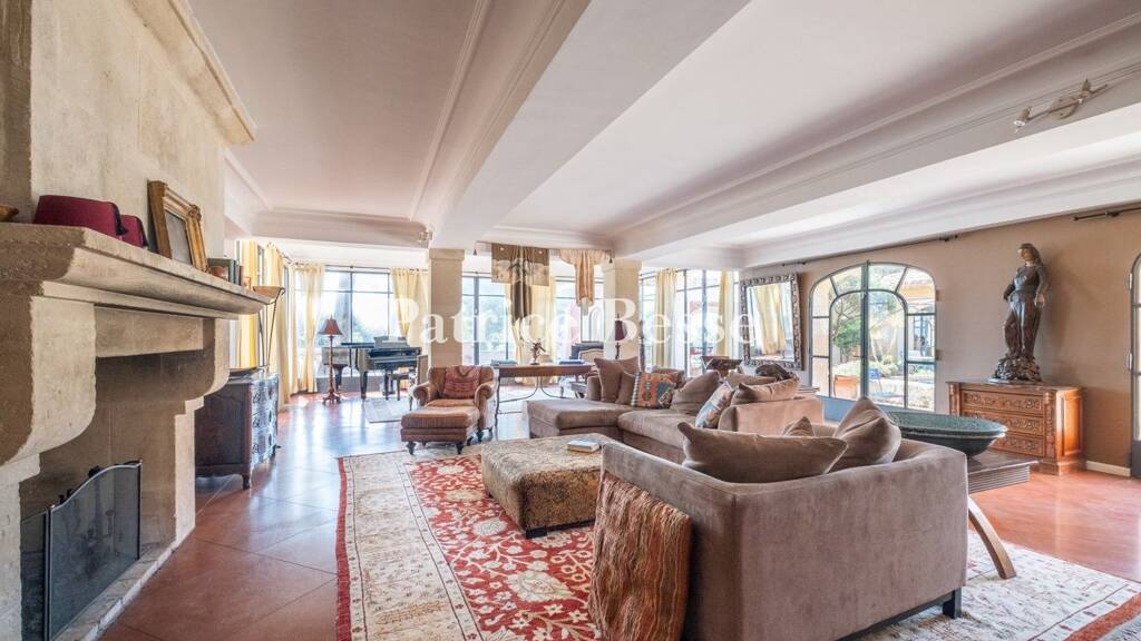 With immaculate and rather massive architecture, including multiple building structures, but with an overall traditional appearance thanks to its ochre-colour plaster-coated exteriors, arched windows surrounded by ashlar stone as well as its barrel canal rooftops bordered by genoise cornices, the villa combines the character of yesteryear with modern comfort. As for its large glass doors and picture windows, they allow the natural light to bathe its interior and provide panoramic views of the sea, while inside, noble materials and soft tones were chosen in order to create a warm and welcoming atmosphere. In addition, the bedrooms, sizeable and sunny, were designed as individual sanctuaries, their bathrooms were tastefully decorated with several luxurious touches and the living areas, generous in size, are extended outdoors thanks to several sun-dappled patios, bordered by understated wrought-iron guardrails or stone balustrades, intended for convivial moments between family or friends as well as peaceful relaxation lulled by the wind in the pine trees.