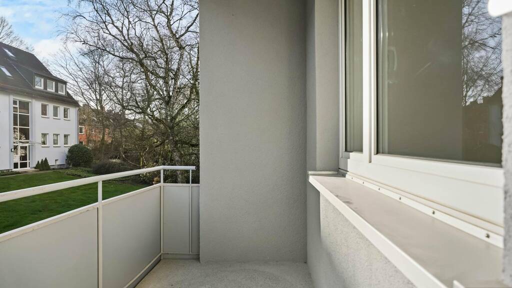 Die Wohnung befindet sich im Erdgeschoss eines gepflegten Mehrfamilienhauses und verfügt über einen Balkon.