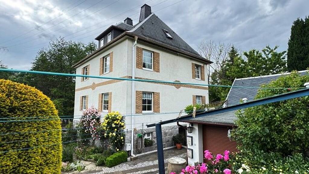 Ein älteres Wohnhaus Bauj. ca. 1930 mit Charm in ruhiger Wohnrandlage mit 2 abgeschlossenen Wohneinheiten unweit von Aue-Bad Schlema ca. 6km im Grünen liegend sucht einen neuen Eigentümer mit Ideenreichtum und Lust zur wohnwirtschaftlichen Veränderung. Kann auch gern als Einfamilienhaus bis zum DG genutzt werden auf Grund des großzügigen Dachbodens mit 2 Mansarden und einem schon vorhandenen WC. Die Wohnbereiche auf den einzelnen Ebenen weisen keine Schrägen auf und sind räumlich vollumfänglich nutzbar. EG mit Diele, Schlafzimmer, Wohnzimmer, Kinderzimmer, Küche, Bad im EG mit Dusche u. Waschtisch und separatem WC , OG - mit gleicher Aufteilung , außer Bad mit Eckwanne u. Waschtisch und separatem WC , Küche im EG mit Heizung und Feuerstelle, könnte im OG bei Bedarf bestimmt auch genutzt werden nach Abstimmung mit dem Schornsteinfeger. Die Böden sind unterschiedlich in den Wohnbereichen mit Teppich, Dielung, Laminat und Fließen versehen. Brunnen vorhanden mit kleinem Hauswasserwerk, ein Anschluss an die WC Spülung ist möglich, Klärgrube mit Vollbiologie Einbau 2015, Trockenlegung erfolgte komplett 2000 ,der Elektroanschluss müsste mit neuem Zählerschrank versehen werden. Das Wohnhaus ist in einem guten baulichen Zustand, Treppenaufgang massiv und auf Grund des Alters der Eigentümerin wurde ein Treppenlift eingebaut.