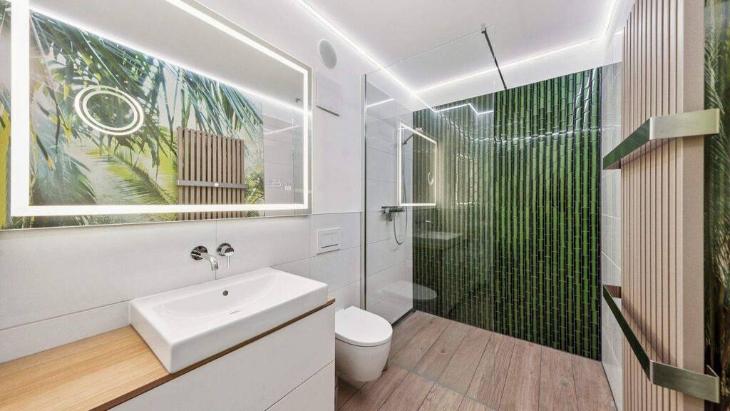 Diese außergewöhnliche Immobilie vereint modernes Design, höchsten Wohnkomfort und eine einzigartige Lage direkt am Wasser. Mit traumhaftem Blick auf die Dahme und direktem Wasserzugang vom Grundstück aus bietet sie ein Wohnerlebnis der besonderen Art. Bereits beim Betreten überzeugt der stilvolle Eingangsbereich mit hochwertigen Fliesen, während in den übrigen Räumen edles Eichenparkett verlegt wurde. Eine durchgängige Fußbodenheizung sorgt in allen Bereichen für angenehme Wärme. Großzügige, bodentiefe Fensterfronten mit dreifacher Verglasung schaffen lichtdurchflutete Räume und eröffnen einen beeindruckenden Blick ins Grüne und auf das Wasser. Innen- und Außenrollos sowie integrierter Insektenschutz an allen Fenstern garantieren zusätzlichen Komfort. Das Herzstück bildet der ca. 45 m² große Wohnbereich mit integrierter Küche. Die maßgefertigte, luxuriöse Einbauküche mit Kochinsel lässt keine Wünsche offen und erfüllt durch Ihre Ausstattung höchste Ansprüche an Design und Funktionalität. Die Wohnung verfügt über zwei stilvoll gestaltete Bäder mit großzügigen Walk-In-Duschen. Ein Badezimmer ist als en Suite ausgeführt und zusätzlich mit einer exklusiven Infrarotsauna ausgestattet - ideal für entspannte Wellnessmomente im eigenen Zuhause. Ein umlaufender Balkon in sonniger Südost-Ausrichtung erweitert den Wohnraum ins Freie und gewährt zu jeder Jahreszeit entspannende Momente mit Blick auf die Dahme. Das integrierte LOXONE Smart-Home-System ermöglicht die komfortable Steuerung von Beleuchtung, Beschattung und Raumklima. Maßgefertigte, beleuchtete Einbauschränke in allen Räumen bieten stilvollen Stauraum und unterstreichen den hochwertigen Charakter der Immobilie. Abgerundet wird dieses exklusive Angebot durch zwei Tiefgaragenstellplätze, von denen einer mit einer Wallbox für Elektrofahrzeuge ausgestattet ist.