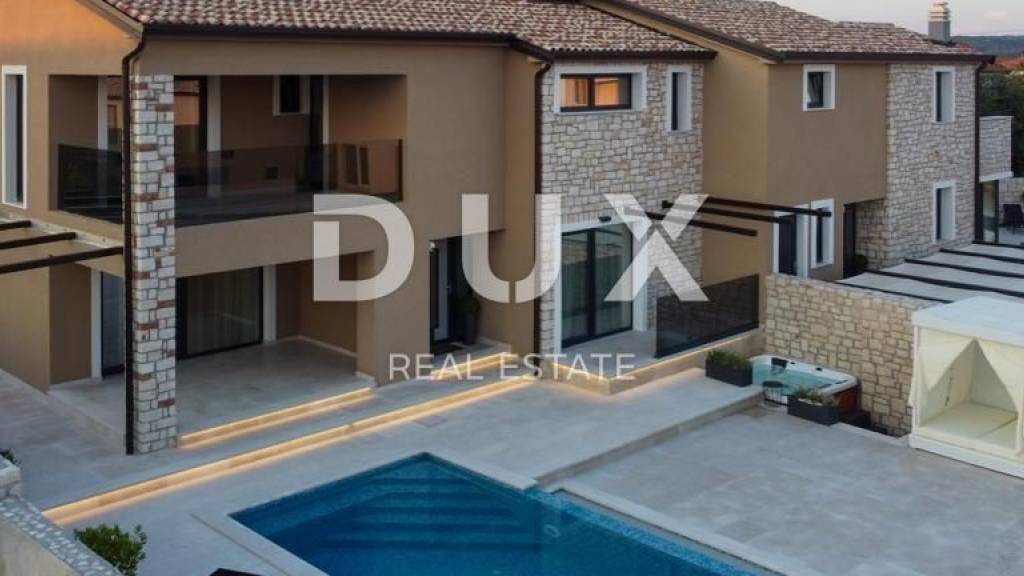 Stadt Brtonigla, einer Gemeinde, die reich an natürlichen Ressourcen ist und stolz auf ihre unberührte Natur ist. Es umfasst die Meeresküste und das grüne Binnenland Istriens. Auf dem Gebiet der Gemeinde herrscht ein mildes, mediterranes Klima, das das ganze Jahr über einen angenehmen Aufenthalt ermöglicht. Der Großteil der aktiven Bevölkerung der Gemeinde ist in der Landwirtschaft tätig, und die wichtigsten Produkte von hoher Qualität sind Wein, Oliven und Olivenöl, Käse, Fisch, Trüffel, Fleisch, istrischer Schinken, Gemüse sowie einzigartige duftende und aromatische Kräuter. Ein weiterer grundlegender Wirtschaftszweig der Gemeinde ist der Tourismus. Es gibt auch den zweitbesten Aquapark Europas. Auf einem Grundstück von ca. 400 m2 gelegen, bietet diese großzügige Villa eine Gesamtwohnfläche von 178,70 m2. Das Erdgeschoss der Villa verzaubert Sie bereits beim Betreten es erstreckt sich über eine Eingangshalle, ein Gäste-WC, zwei Abstellräume (einer innen und der andere mit Zugang von außen), ein gemütliches Schlafzimmer mit eigenem Bad und ein großzügiges Wohnzimmer mit Essbereich und einer modernen hochwertigen Küche im Open-Space-Konzept. Vom Wohnzimmer aus gibt es einen direkten Ausgang zur Terrasse und zum Sonnendeck mit Pool und Whirlpool, wodurch eine idyllische Ecke zum Entspannen und Genießen entsteht. Wir steigen die Treppe hinauf in den ersten Stock der Villa, der einen Flur und drei elegant eingerichtete Schlafzimmer umfasst, jedes mit seinem eigenen luxuriösen Badezimmer. Zwei Schlafzimmer haben Zugang zu großzügigen Balkonen mit Blick auf das Meer und die wunderschöne Natur. Die Möbel in den Zimmern sind von hoher Qualität und die Klimaanlagen sorgen für Komfort. Für Heizung und Kühlung sorgen fünf hochwertige Klimaanlagen, während in den Badezimmern Heizkörper installiert sind. Es besteht die Möglichkeit, einen Kamin als zusätzliche Wärmequelle zu installieren. Im ganzen Haus ist italienische Designerkeramik verteilt, während die Treppe mit Holz ausgekleidet ist. Anthrazitfarbene PVC-Tischlerarbeiten tragen zum eleganten Erscheinungsbild des Raums bei und maßgefertigte Möbel kümmern sich um jedes Detail. Für die Sicherheit der Anlage sorgen Videoüberwachung und eine Alarmanlage. Das Haus wurde nie genutzt und wird nicht vermietet, was ein zusätzlicher Vorteil ist. Im Außenbereich bezaubern die Beleuchtung im Garten, der Steinzaun, der Infinity-Pool mit Mosaikoberfläche, das System zur Elektrolyse von Salzwasser und Vorbereitung zum Erhitzen des Pools sowie der Whirlpool für völlige Entspannung. Zu den weiteren Annehmlichkeiten gehören ein angelegter Garten, Vorbereitungen für eine Sommerküche, ein elektrischer Portun und zwei Parkplätze. Dieses Haus liegt perfekt in der Nähe von Geschäften, Restaurants, Schulen und Kindergärten und bietet schnellen Zugang zu den nahe gelegenen Stränden, sodass die Eigentümer alle Vorzüge des mediterranen Lebens genießen können. Diese Villa stellt eine ausgezeichnete Gelegenheit für das Familienleben, einen luxuriösen Urlaub vom Stress des Stadtlebens im mediterranen Klima oder als finanzielle Investition zur Vermietung dar. Sehr geehrte Kunden, die Agenturprovision wird gemäß den Allgemeinen Geschäftsbedingungen www.dux-nekretnine.hr/opci-uvjeti-poslovanja berechnet