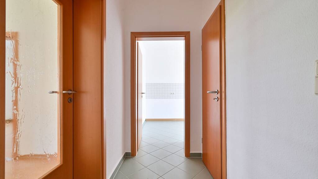 Die Küche ist mit einem Fenster ausgestattet und wird durch einen angrenzenden Abstellraum ergänzt, der praktischen Stauraum bietet. Das Tageslichtbad verfügt über eine Badewanne. Ein zentral gelegener Flur verbindet alle Räume miteinander und schafft eine harmonische Wohnatmosphäre.