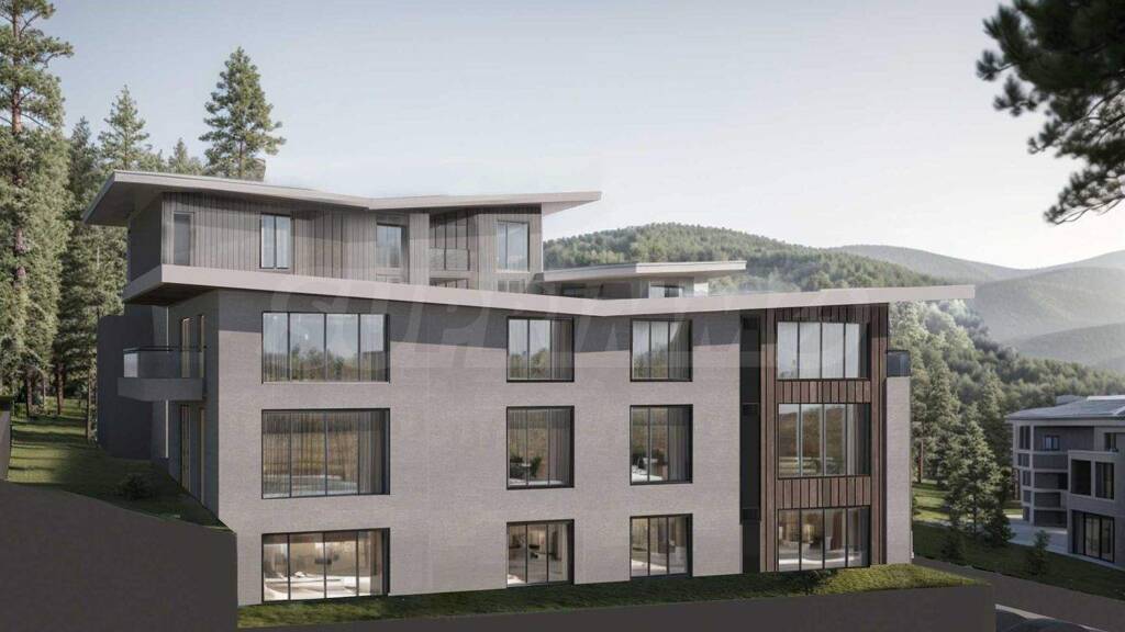 Das Projekt liegt in einer ruhigen, grünen Gegend, wo sich die Architektur harmonisch in die Naturlandschaft einfügt. Die Fassaden präsentieren sich in einem modernen und eleganten Stil mit klaren Linien, großzügigen Terrassen und Panoramafenstern, die einen malerischen Blick auf das Rhodopengebirge freigeben. Die Gemeinschaftsbereiche werden mit hochwertigen Materialien gestaltet, und die angrenzenden Flächen sind bis ins kleinste Detail landschaftlich angelegt, wodurch ein Gefühl von privatem Wohnen entsteht.