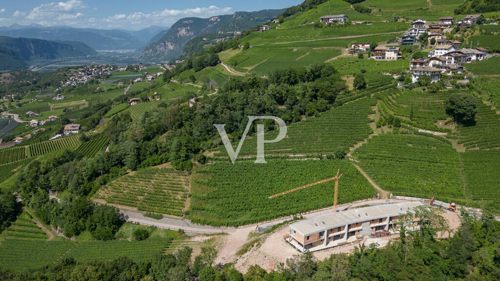 Die repräsentative Reihenvilla wird nach dem höchsten Klimahaus-Standard "A", also energieeffizient, erbaut. Durch die Lage und den Blick in die Weinberge bietet die Immobilie einen hohen Grad an Privatsphäre. Über den Eingang im Erdgeschoss gelangt man direkt in den Wohn-, Ess- und Gartenbereich "LIVING", der durch die großen Schiebefenster viel Tageslicht erhält und lichtdurchflutet wird. Der ca. 245 m² große Garten mit Liegewiese ist ein gemütlicher Ort zum Entspannen und Verweilen im Kreise der Familie oder mit Freunden. Im Erdgeschoss befinden sich des Weiteren ein Badezimmer und ein Flur. Im Obergeschoss, erreichbar über eine Innentreppe, befindet sich der Schlafbereich, bestehend aus zwei Doppelschlafzimmern, beide mit Zugang zur großen Panoramaloggia, Flur, Bad/WC mit Fenster. Für eine besondere Wohlfühlatmosphäre in allen Räumen sorgt eine autarke Fußbodenheizung und -kühlung, die über eine komfortable Einzelraumtemperaturregelung gesteuert wird. Eine Wärmepumpe und Solarkollektoren auf dem Dach des Gebäudes sorgen für die Energieversorgung. Über eine zusätzliche Innentreppe gelangt man bequem in den Keller und die ca. 48 m² große Garage (im Preis enthalten). Die Qualität der zum Bau verwendeten Materialien ist von hohem Standard. Baujahr 2023. Übergabe März/April 2024.