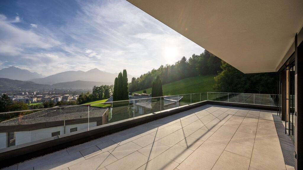 hochwertige Ausstattung: Holz-/Alufenster, Landhausdiele (Echtholzparkett), großflächige Fliesen (Feinsteinzeug), Sonnenschutz mit Funk (Raffstores), große Terrassen mit Blick auf den Patscherkofel, die Serles und die Nockspitze