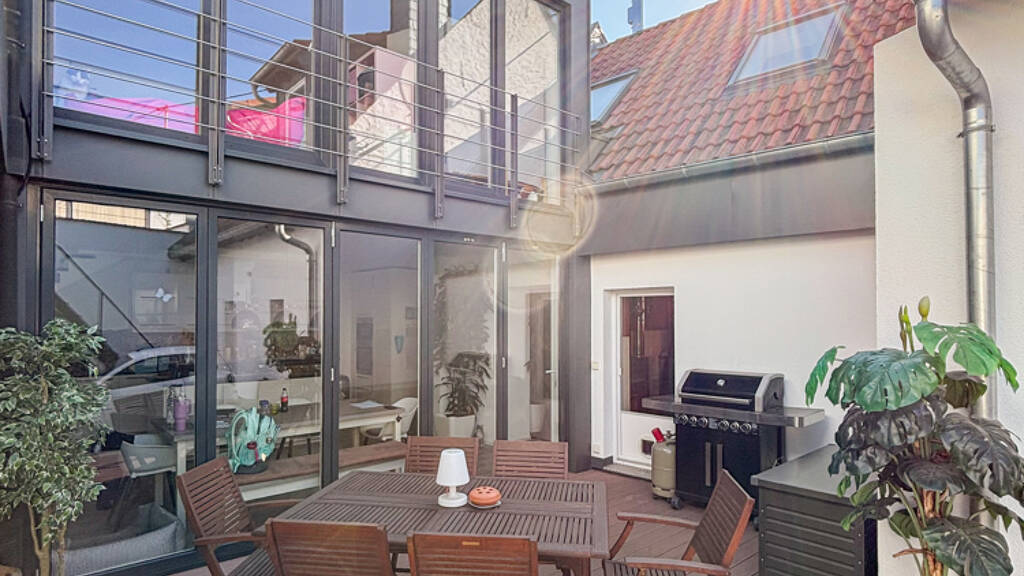 Auf der im Innenhof liegenden Werkstatt von ca. 40 m² wartet zusätzlich eine riesige Sonnen-Terrasse auf Sie.