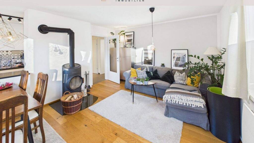 * Großzügiger Wohn- und Essbereich mit angenehmer Lichtführung, gemütlichem dänischen Ofen sowie direktem Ausgang auf die ca. 18 m² große Terrasse