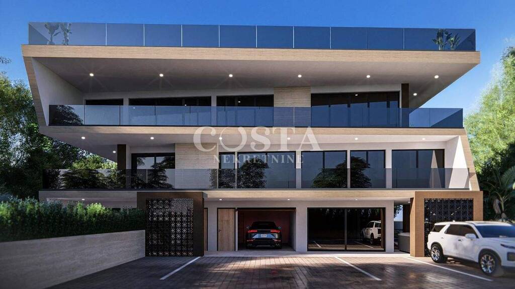 Für den Bau wurden hochwertige Materialien verwendet, darunter Stahlbetonkonstruktion, Aluminiumfenster und -türen mit Moskitonetzen und elektrischen Rollläden, erstklassige italienische Keramik sowie Travertin an Fassade und Innenwänden. Die Wohnung ist vollklimatisiert und verfügt über eine Fußbodenheizung mit Wärmepumpe.