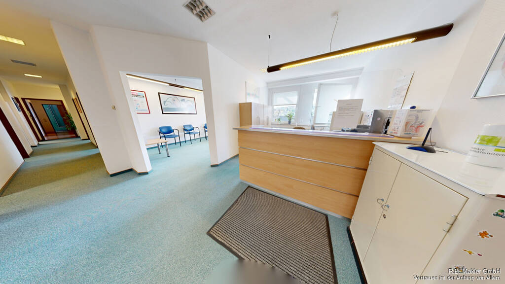 * Nutzfläche: * An die Praxisfläche angrenzende Wohnung (Nachtdienst-Wohnung) * 3. OG, Personenaufzug * Inventar kann nach Wunsch nach Absprache übernommen werden * Kompressor vorhanden * Teeküche * Ab Sofort * 2,38 Monatskaltmieten Mieterprovision inkl. MwSt.