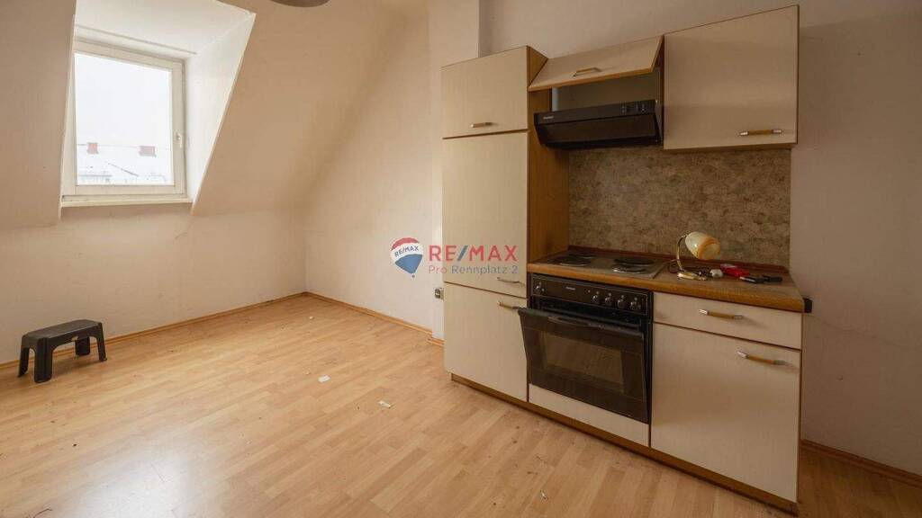 Besonders hervorzuheben ist das Dachgeschoss, das in Kombination mit dem Spitzboden das Potenzial für eine exklusive Maisonettenwohnung bietet. Architekten-Entwürfe zeigen zudem die Möglichkeit, im Eingangsbereich des Erdgeschosses einen Lift zu integrieren und so eine barrierefreie Nutzung zu gewährleisten. Skizzen für einen möglichen Dachausbau unterstreichen ein durchdachtes Nutzungskonzept, das Wohnkomfort und Effizienz harmonisch vereint.