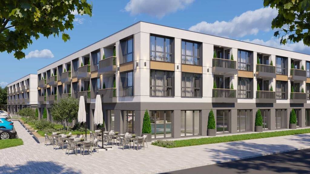 Der Komplex bietet Studios, Apartments mit einem oder drei Schlafzimmern, Geschäftsräume, Parkplätze und Garagen.