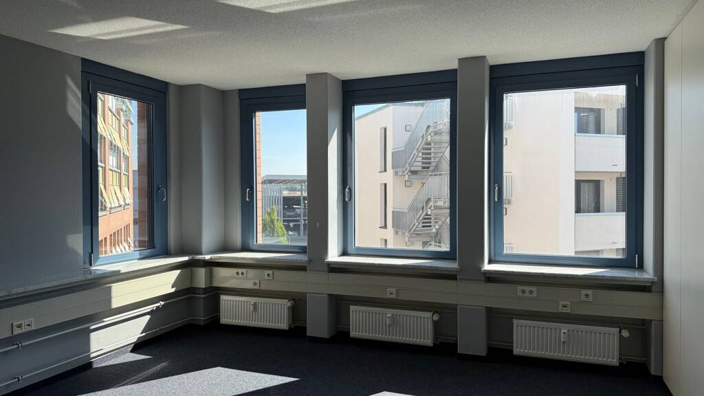 Großzügige Fensterflächen sorgen für eine helle und freundliche Arbeitsatmosphäre. Zur Regulierung von Sonneneinstrahlung und Licht stehen elektrische Jalousien an allen Fenstern zur Verfügung.
