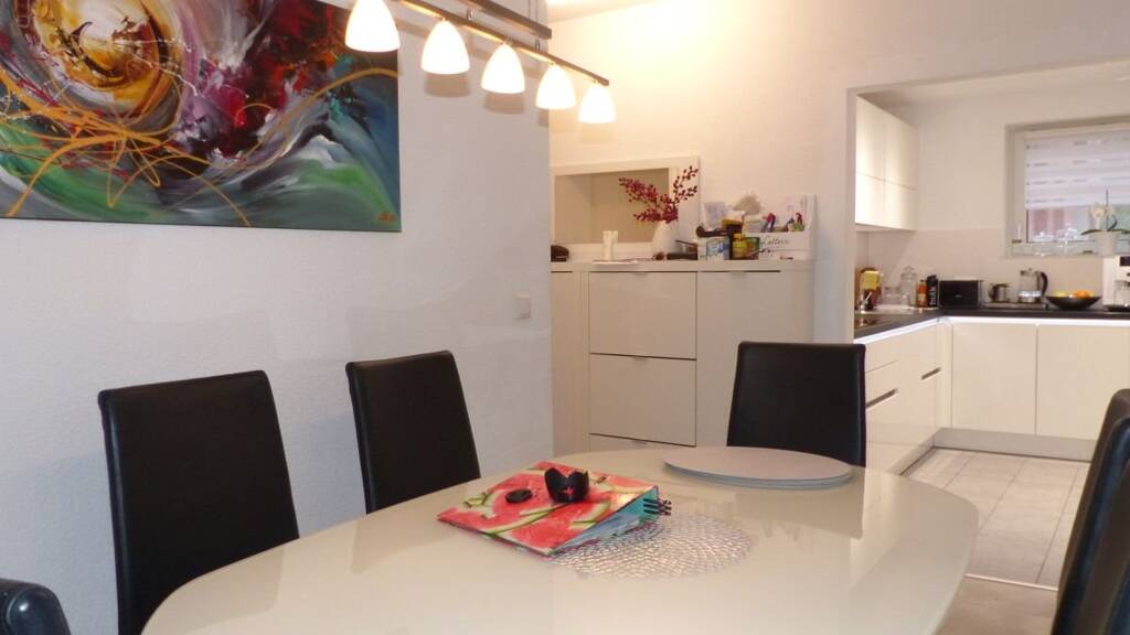Zentral und ruhig gelegen in Eschborn findet sich diese 3-Zimmer-Wohnung in einem Mehrfamilienhaus mit 8 Stockwerken. Die Wohnung kann bequem durch einen Fahrstuhl erreicht werden. Im Eingangsbereich befindet sich das Badezimmer, das mit einer Badewanne und Waschbecken sowie Platz für eine Waschmaschine und Trockner ausgestattet ist. Im Raum daneben befindet sich das WC. und einem zusätzlichen Waschbecken. Zwei Schlafzimmer sind möglich, man kann eines auch als Kinderzimmer nutzen. Der offene Essbereich ist nahe des Balkons, auf dem man entspannen kann. Daneben liegt das große Wohnzimmer, das durch den offenen Essbereich noch größer wirkt. Die moderne Einbauküche stammt aus dem Jahr 2018 und hatte damals 23000 Euro gekostet. Im Flur sind weitere Schränke, die zur Aufbewahrung dienen. Zur Wohnung gehört ein Keller, sowie die Möglichkeit, einen Fahrradkeller mit zu benutzen. Ein Außenparkplatz ist bereits im Preis enthalten. Zentral und ruhig gelegen in Eschborn findet sich diese Drei-Zimmer-Wohnung in einem Mehrfamilienhaus mit 8 Stockwerken. Die Wohnung kann bequem durch einen Fahrstuhl erreicht werden. Im Eingangsbereich befindet sich das Badezimmer, das mit einer Badewanne und Waschbecken sowie Platz für eine Waschmaschine und Trockner ausgestattet ist. Im Raum daneben befindet sich das WC. und einem zusätzlichen Waschbecken. Zwei Schlafzimmer sind möglich, man kann eines auch als Kinderzimmer nutzen. Der offene Essbereich ist nahe des Balkons, auf dem man entspannen kann. Daneben liegt das große Wohnzimmer, das durch den offenen Essbereich noch größer wirkt. Die moderne Einbauküche stammt aus dem Jahr 2018 und hatte damals 23000 Euro gekostet. Im Flur sind weitere Schränke, die zur Aufbewahrung dienen. Zur Wohnung gehört ein Keller, sowie die Möglichkeit, einen Fahrradkeller mit zu benutzen. Ein Außenparkplatz ist bereits im Preis enthalten.