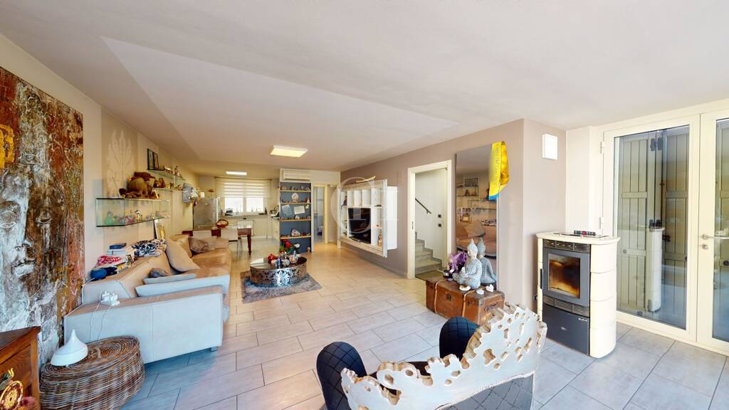 Im Erdgeschoss öffnet sich das Haus zu einem geräumigen Wohnbereich, der auf eine helle Veranda und den privaten Garten führt. Die Etage wird durch eine geräumige Wohnküche und ein Service-Bad vervollständigt. Im ersten Stock befinden sich drei Doppelschlafzimmer, ein weiteres Bad und der Zugang zum Dachgeschoss, einem vielseitigen Raum, der derzeit als Mini-Fitnessraum und Meditationsraum genutzt wird.