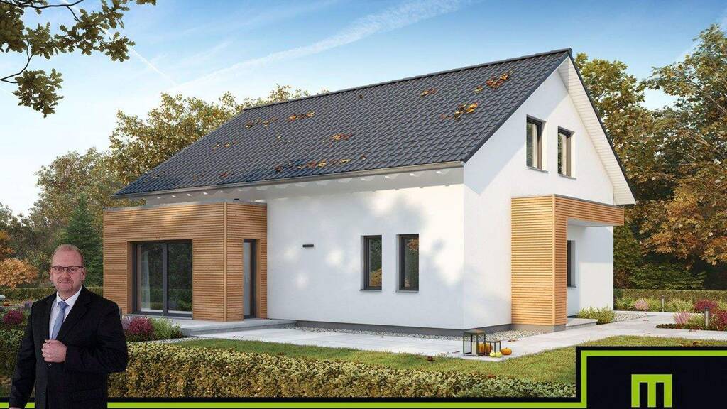IM ANGEBOT ENTHALTEN: - Dieses tolle projektierte Energiesparhaus (KFW55 optional 40/40+) auf Bodenplatte - inkl. F R E I R A U M - Deckenhöhe 2,75m - inkl. Baugrunduntersuchung - inkl. Architektenleistung - inkl. hochwertiges Pfettendach - inkl. selbst reinigende Dachziegel - inkl. Dachrinnen und Fallrohr aus Titanzink - inkl. Außenputz - inkl. Moderne Haustür in massiver Ausführung mit Edelstahlgriff und Mehrfach Sicherheitsverriegelung - inkl. Dreifachverglaste Wärmeschutzfenster - inkl. Aluminium-Rollläden - inkl. Aussenfensterbänke - inkl. Material Luft-Wasser-Wärmepumpe inkl. Fußbodenheizung - inkl. Material kontrollierter Be- und Entlüftung mit Wärmerückgewinnung - inkl. Material für Sanitärrohinstallation - inkl. Elektropaket inkl. Montage - inkl. Treppe in verschiedenen Design-Varianten inkl. Montage - inkl. Klima-Plus Wände - inkl. Blower Door Test - inkl. Bauleistungsversicherung - inkl. Bauherren-Haftpflichtversicherung - inkl. Wohngebäudeversicherung - inkl. Feuer-Rohbauversicherung - Keller gegen Aufpreis möglich