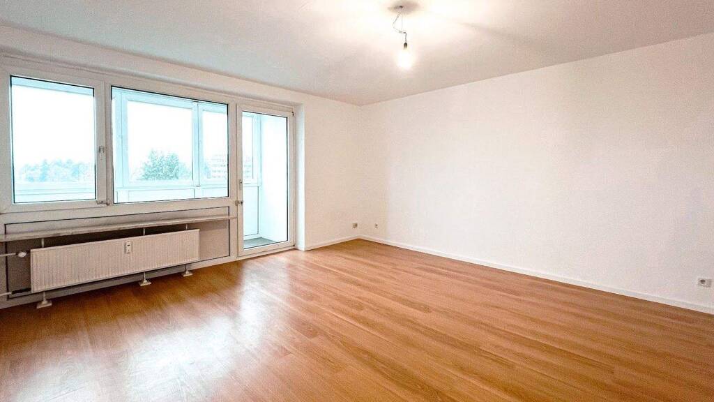 Die 2-Zimmer-Wohnung im 5. Obergeschoss bietet auf rund 61 m² eine klare und funktionale Raumaufteilung. Alle Zimmer sind bequem vom Flur aus erreichbar, der mit einem großen Einbauschrank viel Stauraum bietet.