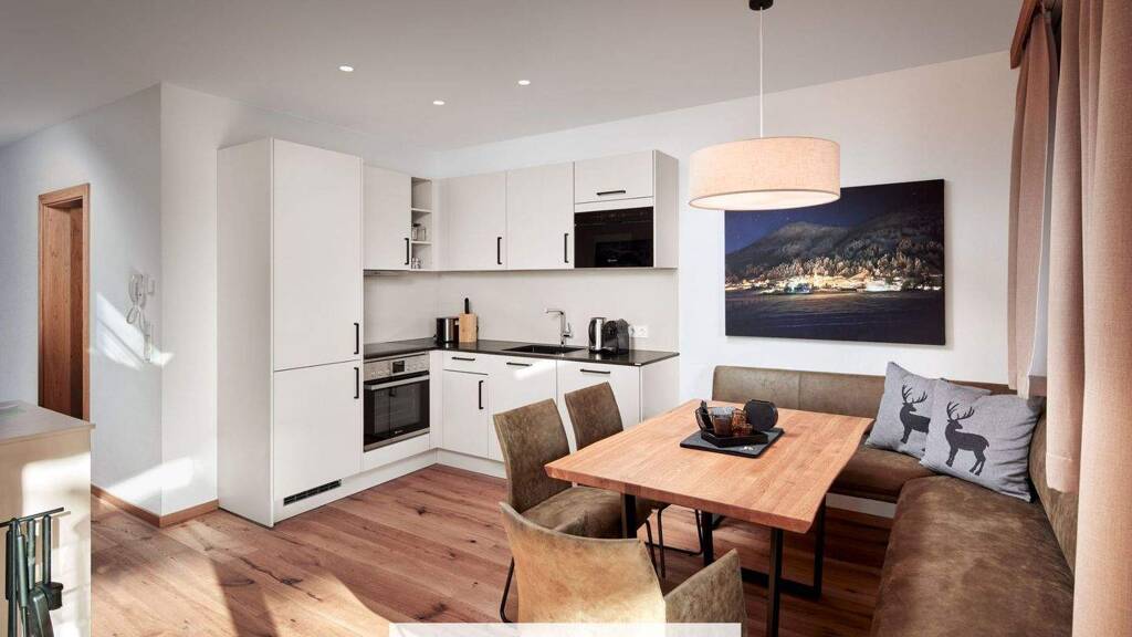 Die stilvolle Einheit mit 55,82 m² Wohnfläche umfasst zwei Schlafzimmer, ein Badezimmer sowie einen Balkon und eignet sich ideal für entspannte Tage in den Bergen ebenso wie für eine attraktive touristische Vermietung.