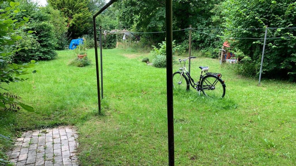 Eine Garage befindet sich im Kellergeschoss, sowie ein gemeinsam genutzter Fahrradkeller mit Außenzugang.