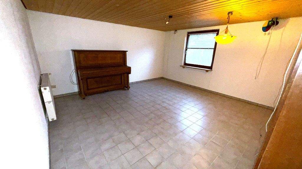 Die Gesamtwohnfläche des Hauses beträgt ca. 150 m². Im Erdgeschoss befindet sich der Eingangsbereich mit Garderobe, von dem aus man in den großzügigen, durch den Erker lichtdurchfluteten Wohn- und Essbereich mit Schwedenofen gelangt. Von hier aus besteht Zugang zur Terrasse und zum Garten in sonniger Südlage. Die separate Küche sowie ein Schlafzimmer, zwei Zimmer und ein helles Badezimmer mit Badewanne/Dusche-/WC ergänzen diese Etage. Das Dachgeschoss ist über den zentralen Treppenflur erreichbar und bietet vier weitere geräumige Kinderzimmer, die durch teilweise bodentiefe Fenster ebenfalls sehr hell und freundlich sind. Das Badezimmer mit Dusche/WC ist neu gefliest, jedoch nicht vollständig fertiggestellt. Ein Abstellraum steht ebenfalls zur Verfügung. Im Kellergeschoss mit ca. 100 m² Nutzfläche befinden sich der Treppenhausflur, ein Vorraum/Garage mit direktem Zugang in den Außenbereich, der Heiz-/Waschraum sowie drei Kellerräume.