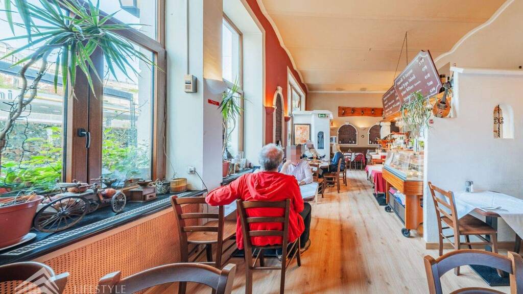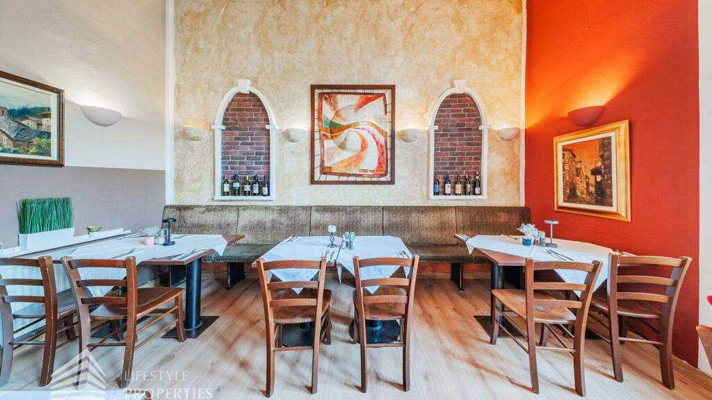 Das Restaurant befindet sich in einer sehr frequentierten Lage mit hoher Sichtbarkeit und besteht aus einem großzügigen Gastraum mit ca. 49 m²,der Küche mit ca. 18 m² und den Sanitärräumen mit ca. 6 m². Gleich beim Eintreten befindet sich der einladende Gastraum mit einer großen Bar, dahinter die offene Küche samt Pizzaofen - perfekt für authentische mediterrane Küche. Gäste-WCs sind direkt im Erdgeschoss vorhanden.